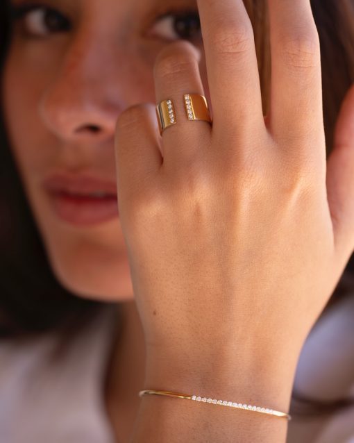 | Description | Bague large or et diamants, en or 18 carats recyclé sertie de 10 diamants blancs |