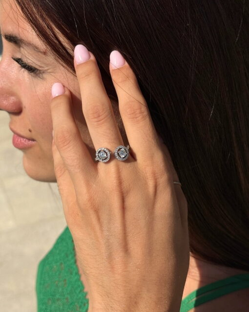 Découvrez notre somptueuse bague Toi et Moi en or blanc, une véritable ode à l’amour éternel, élégance et romance à l’état pur. Cette bague est conçue pour les âmes sœurs, avec deux magnifiques diamants centraux symbolisant l’union de deux cœurs. Un corps de bague en or blanc 18 carats, offrant une brillance éclatante et une durabilité exceptionnelle. Chaque diamant est soigneusement sélectionné pour sa pureté et sa clarté. La bague est pavée de 46 diamants blancs, disposés avec élégance sur le contour de chacun des diamants pour ajouter une touche de sophistication et de glamour. Cette bague est le choix parfait pour une demande en mariage, des fiançailles, un anniversaire ou simplement pour exprimer votre amour. Elle se démarque par son élégance et son raffinement, et est certaine de faire briller les yeux de celle qui la portera. Fabriqué en France